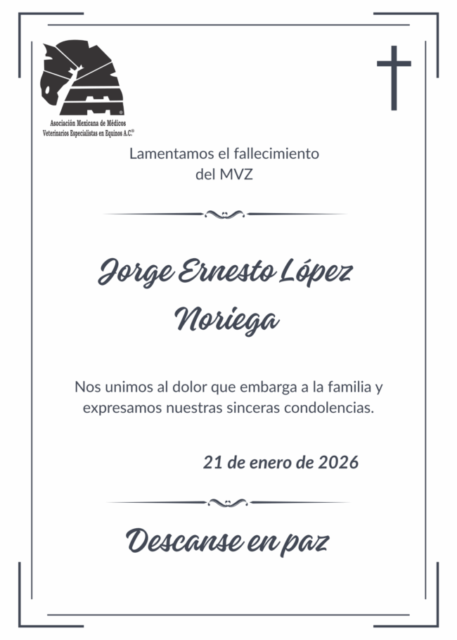 AMMVEE lamenta el fallecimiento del MVZ Jorge Ernesto López Noriega Avisos, Sin categorizarPor AMMVEE ACenero 21, 2026Deja un comentario
