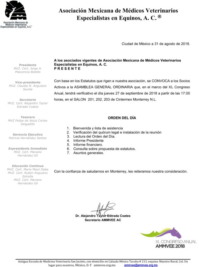 Convocatoria Curso Equinos 24 y 25 septiembre Monterrey AMMVEE CUOTAS DE RECUPERACIÓN.- Equinos 24 y 25 de septiembre Monterrey, NL FORMATO DECLARACIÓN BAJO PROTESTA DE DECIR LA VERDAD FORMATO DE SOLICITUD-2018 Para inscripciones a este curso es indispensable leer la información arriba mencionada y seguir el llenado de formato e inscripción antes del 7 de…