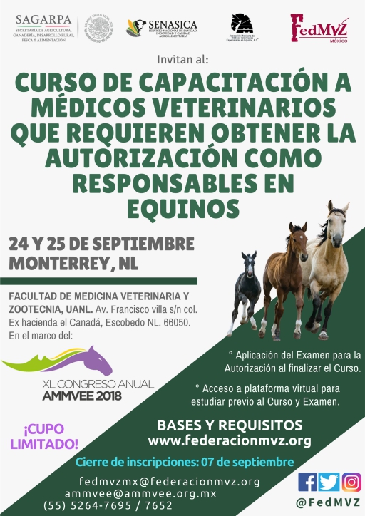 Convocatoria Curso Equinos 24 y 25 septiembre Monterrey AMMVEE