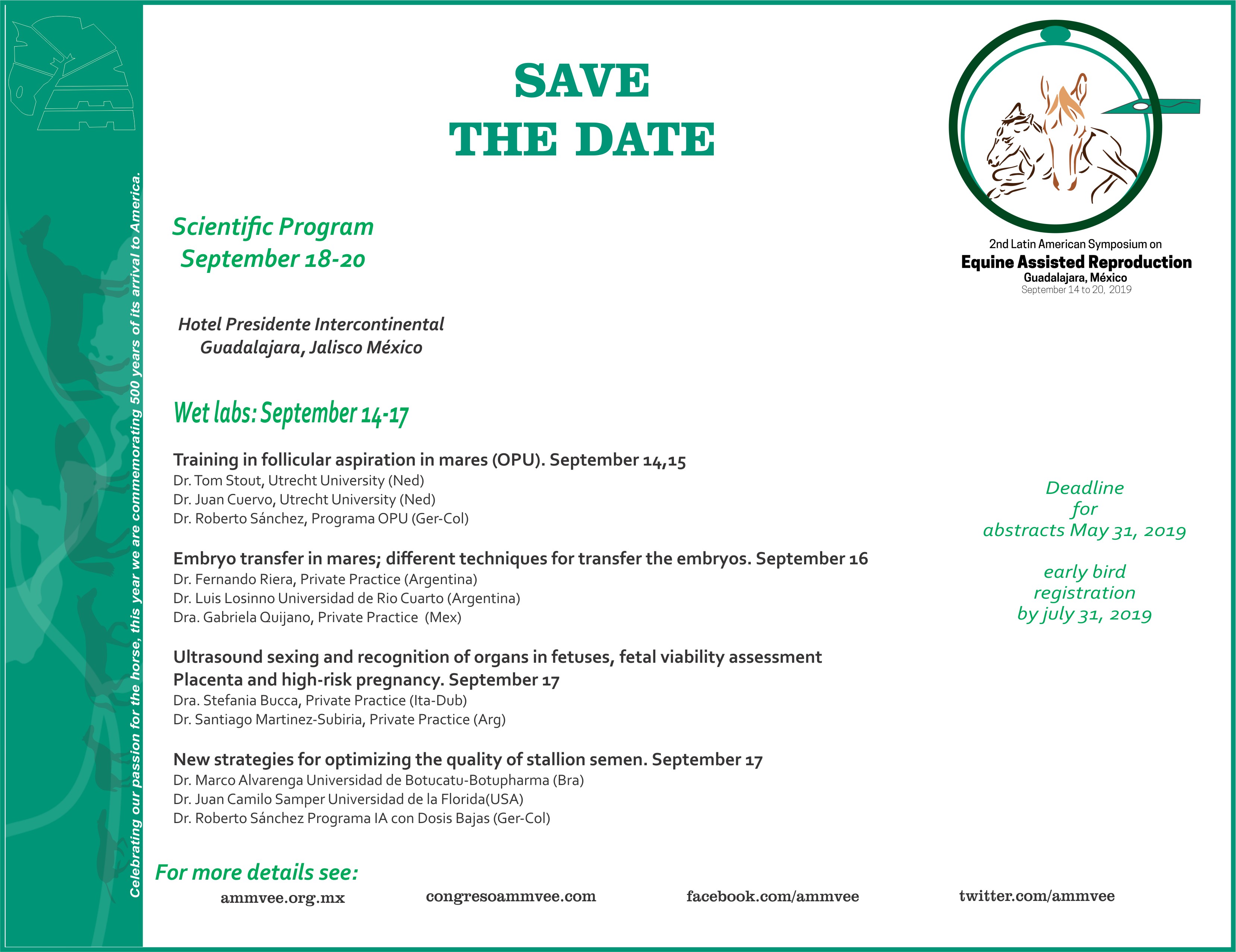 Categorías: Avisos, Congresos, Cursos, SidebarPor AMMVEE ACmayo 8, 2019Navegación entre publicacionesAnteriorPublicación anterior:VI Jornadas Medicina del Equino. ACHVE-WEVA INTERMEDIA, 4 y 5 de JulioSiguientePublicación siguiente:MVZ. Erik Tolksdorff Olbrich. Socio fundador y primer Presidente de AMMVEE
