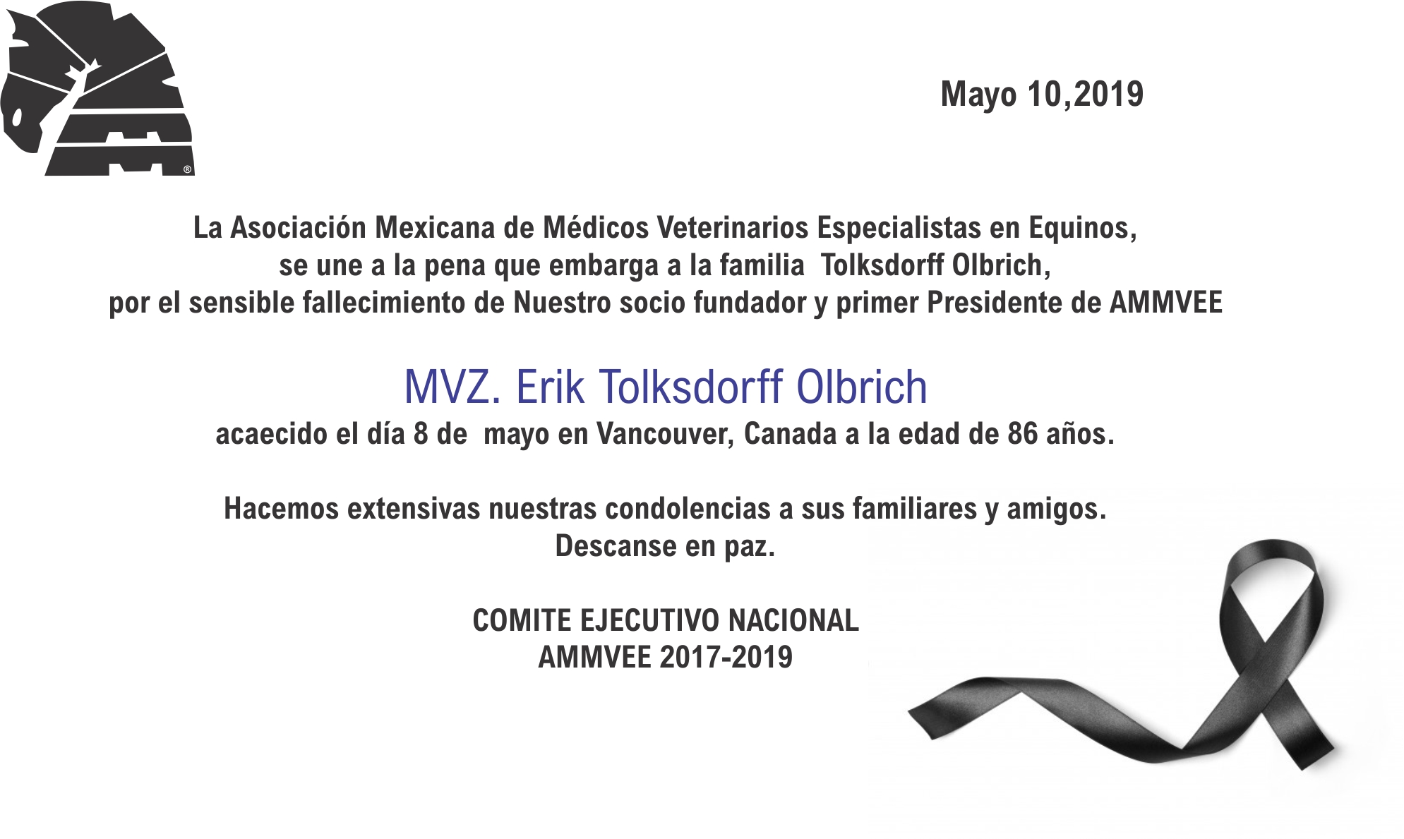 MVZ. Erik Tolksdorff Olbrich. Socio fundador y primer Presidente de AMMVEE