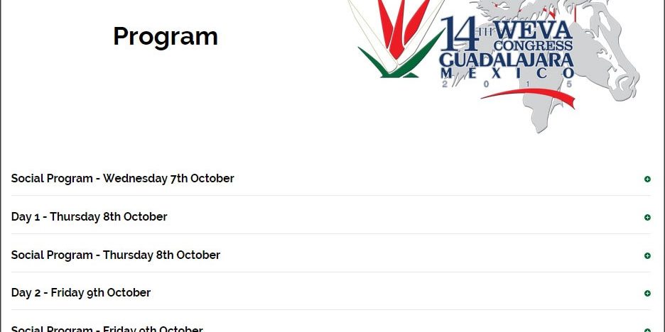 Jul282015Sin categorizar Programa WEVA español ingles Te invitamos a consultar el Programa del Congreso 2015 en Español Categoría: Sin categorizarPor Patricia Hernandezjulio 28, 2015Navegación entre publicacionesAnteriorPublicación anterior:Pre-Congreso: Claudicaciones e ImagenSiguientePublicación siguiente:Semana Preventiva Purina-Zoetis